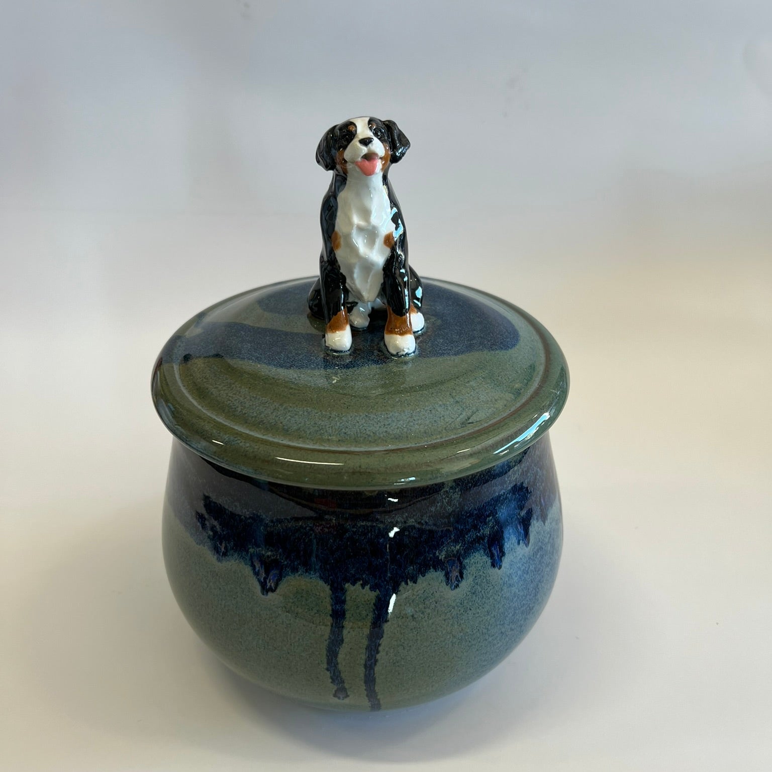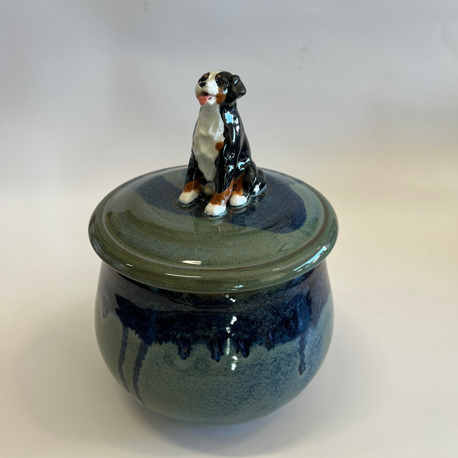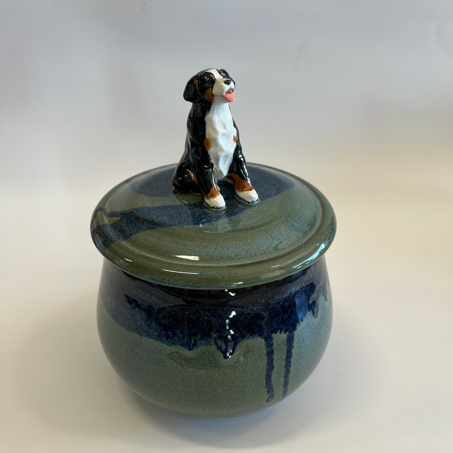 Custom Handcrafted Dog Treat Jar – Playful Bernese Mountain Dog Puppies